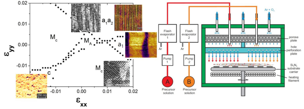 films, where lattice strain is introduced by the heteroepitaxial growth on lattice mismatched